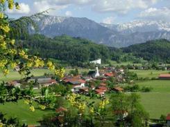 ERL liegt im Nordtiroler Unterinntal, etwa 15 km von Kufstein entfernt an der bayerischen Grenze. Es ist die nördlichste und zugleich tiefstgelegene Gemeinde in Tirol mit 1.450 Einwohnern. Im Hintergrund sieht man Wilder Kaiser.